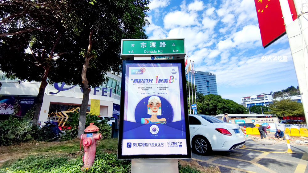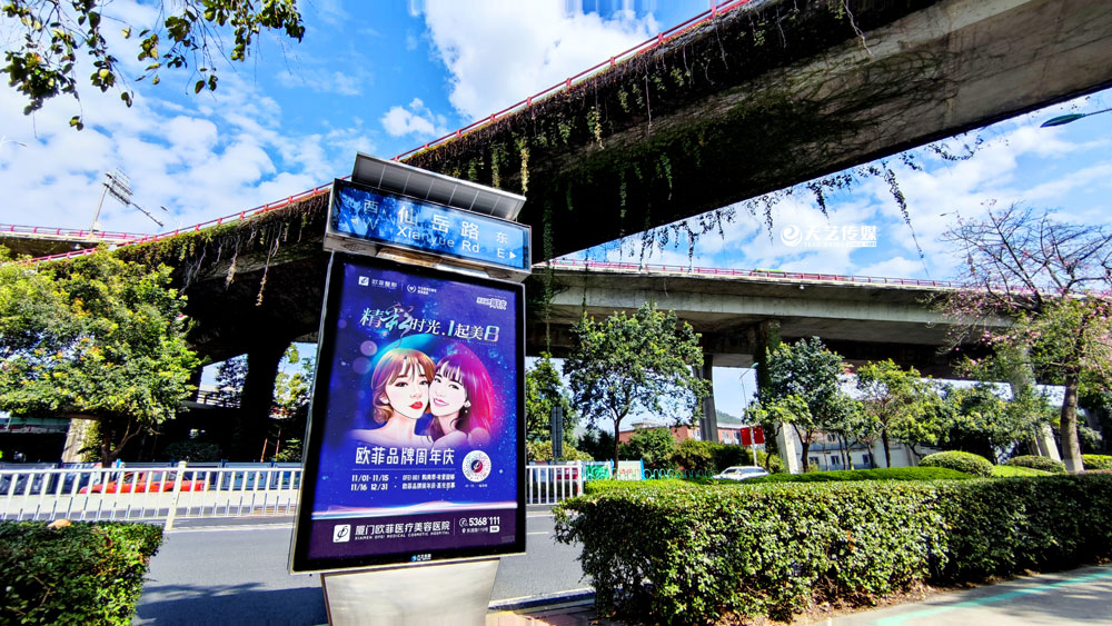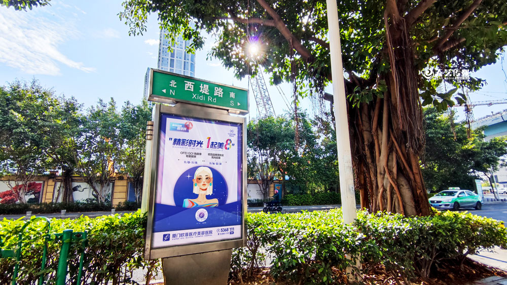 值此歐菲品牌周年慶之際,歐菲品牌在廈門島內(nèi)各個(gè)黃金路段(仙岳路、嘉禾路、湖濱南路、鷺江道、環(huán)島干道、東渡路等)投放超過400座城市路名牌和200座社區(qū)快遞柜媒體(集中在中高端人群住宅區(qū)、居住率較為密集的生活居住區(qū))。