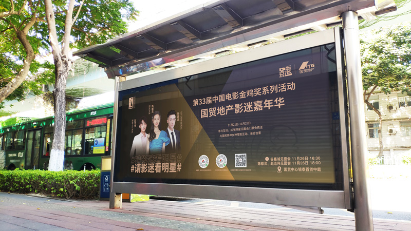隨著本次金雞盛典系列活動的到來,廈門處處充滿了金雞電影盛會舉辦的氣氛。作為連接廈門各個(gè)主干道的公交網(wǎng)絡(luò),遍布城市大街小巷的公交候車亭媒體,以#影迷嘉年華#、#請影迷見明星#等為主背景畫面,全城展示。